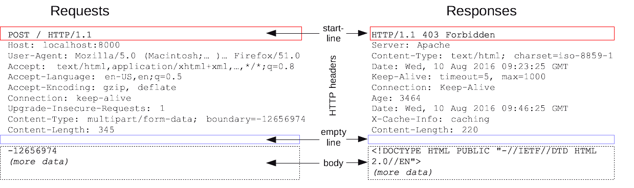 - Client 와 Server 간 Request, Response 는 HTTP 메시지 규약을 따름